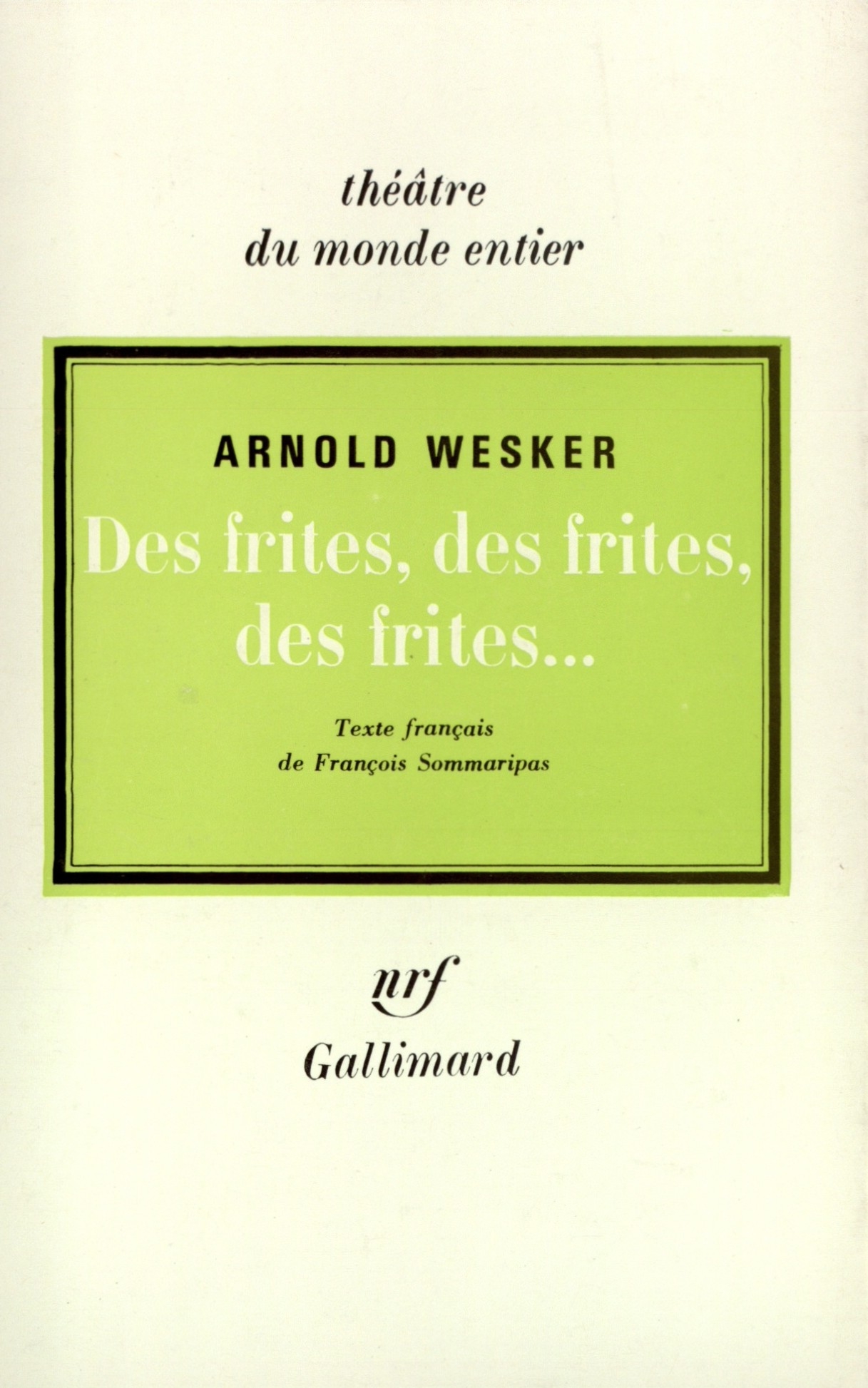 frites, des frites... Mais pas plus que La Cuisine n'était un documentaire sur les restaurants, Des frites n'est une-tranche-de-la-vie militaire. Comme la cuisine d'un grand restaurant, une base militaire de la R. A. F. est pour Wesker un microcosme qui entretient avec le monde extérieur un rapport métaphorique.