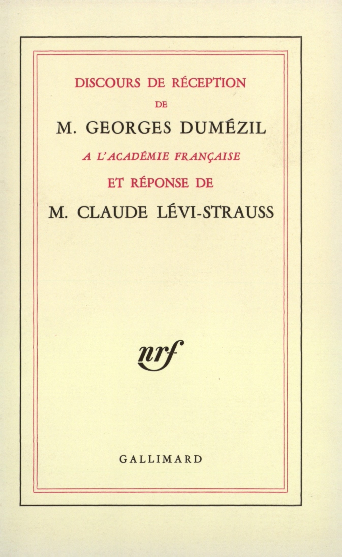 Discours de réception à l'Académie française et réponse de Claude Lévi-Strauss