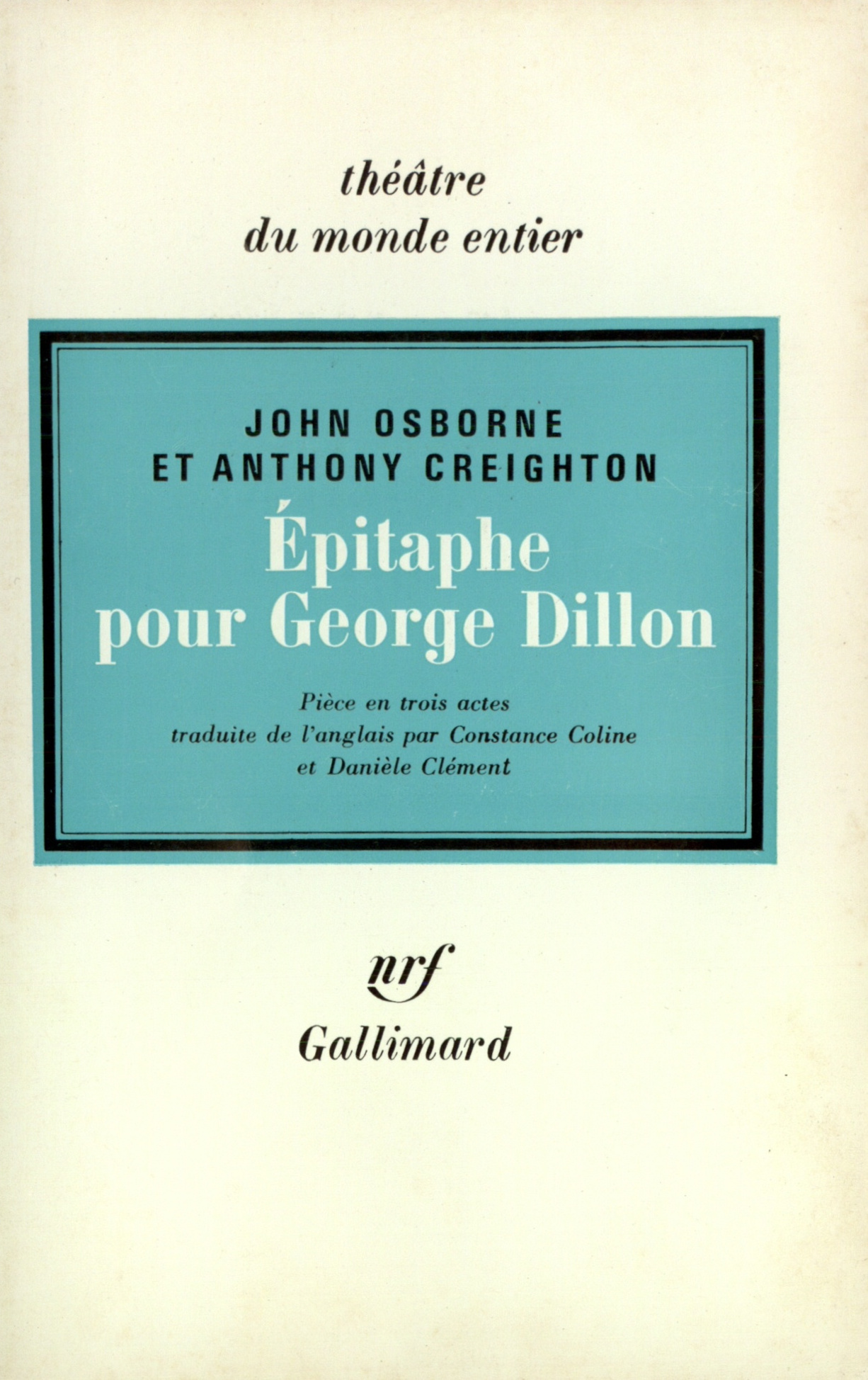 Épitaphe pour George Dillon, la première pièce d'Osborne, écrite en collaboration avec Anthony Creighton, est la pièce du renoncement. Non pas au sens religieux du mot, mais au sens impitoyablement temporel. George Dillon est un garçon doué et brillant, à la fois auteur dramatique et acteur. Il a de grandes ambitions et se veut promis à la gloire. Pas au succès mais à la gloire. Malheureusement, il est sans ressources, de faible santé et de peu de caractère. Au moment où l'action commence, il est recueilli, dans une banlieue londonienne sordide, par une femme au grand cœur et à la petite cervelle, Mme Elliot, qui croit retrouver en lui quelques-uns des traits de son fils bien-aimé tué à la guerre.