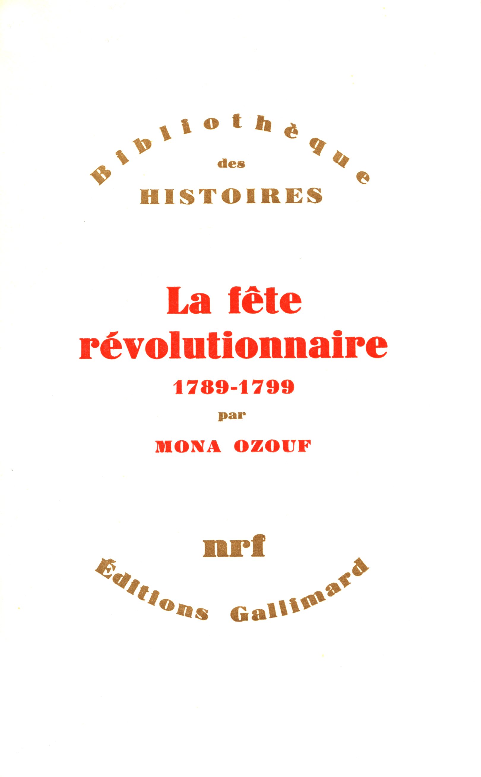 De l'ensemble foisonnant des fêtes en Révolution, les historiens ont proposé mille typologies : ils ont opposé les fêtes célébrées par les équipes concurrentes, souligné l'antagonisme de la Raison et de l'Être suprême, et vu dans Thermidor la coupure de deux ères cérémonielles. À ces interprétations bigarrées, Mona Ozouf substitue l'image d'une fête extrêmement cohérente : elle met en évidence des régularités plus que des singularités ; elle réconcilie Mirabeau, Robespierre, La Révellière-Lépreaux dans une pensée commune des fêtes ; c'est la Fête révolutionnaire, dans son rapport particulier au temps et à l'espace, avec sa volonté pédagogique et son ambition utopienne d'un monde en ordre. La fête de la Révolution française est ici l'institutrice de la nation.