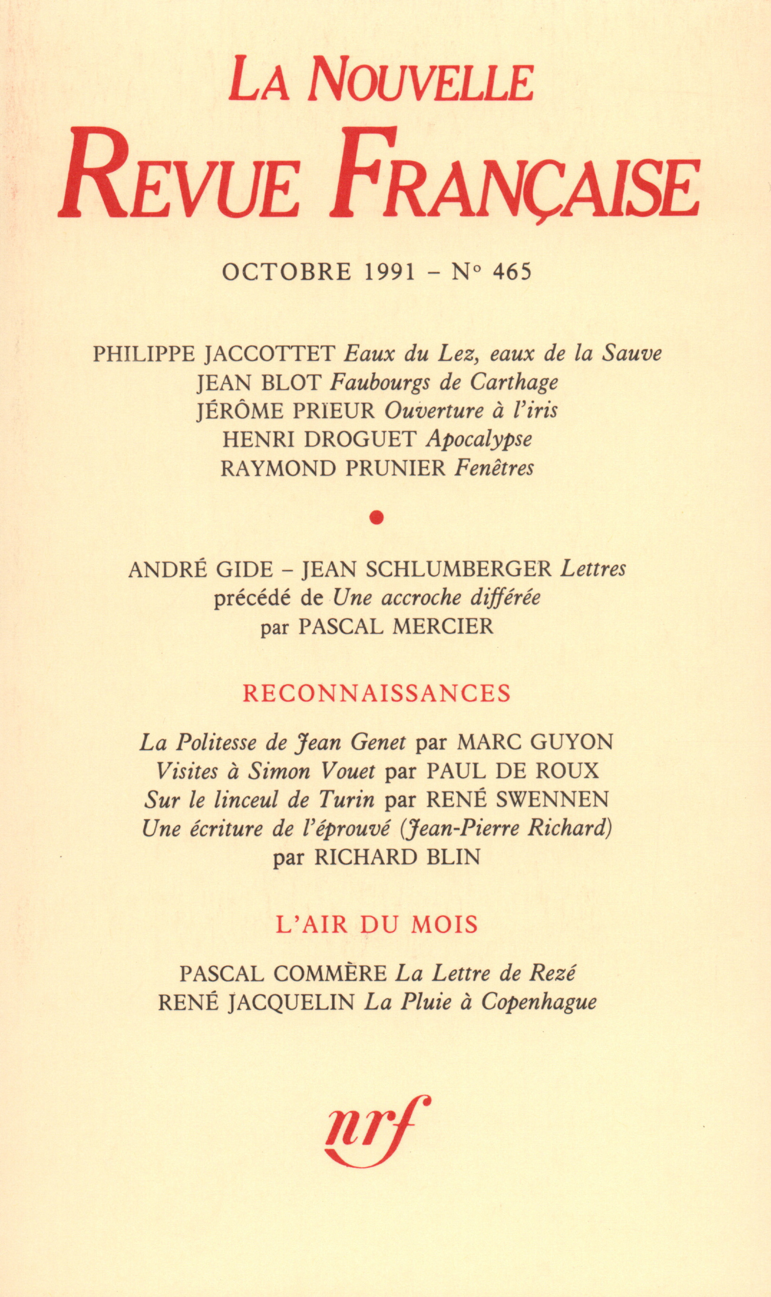 Collection La Nouvelle Revue Française (no465)